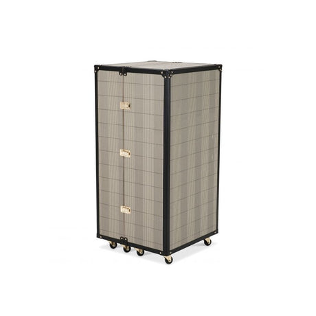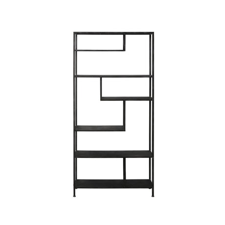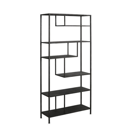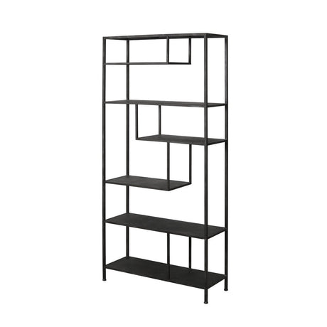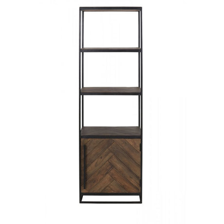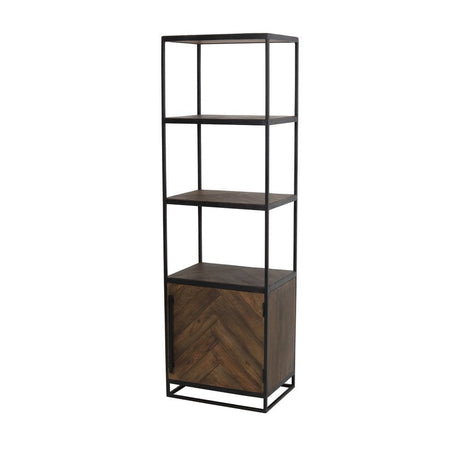 Chisa Wooden Metal Cabinet with Open Shelving - Brown/Black 55x40x180cm