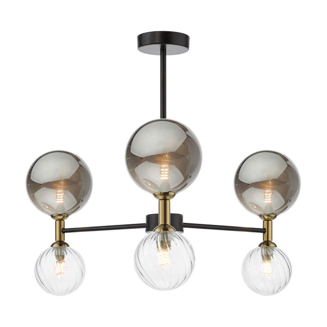 Takara 6 Light Semi-Flush Matt Black and Twisted Glass
