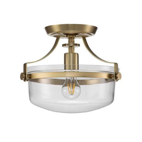 £7604 GBPUnit price /UnavailableIn stock (4999 units)Elegant Brushed Brass Semi-Flush Ceiling Light with Clear Glass Bowl
