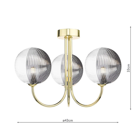 £12500 GBPUnit price /UnavailableIn stock (100 units)Jared 3 Light Semi Flush Polished Gold With Smoked/Clear Ribbed Glass
