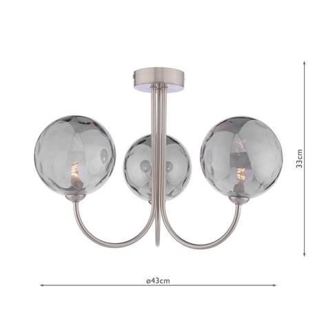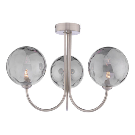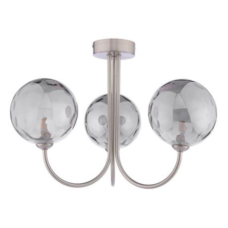 £15580 GBPUnit price /UnavailableIn stock (100 units)Jared 3 Light Semi-Flush Satin Nickel With Smoked Dimpled Glass