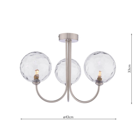 £11800 GBPUnit price /UnavailableIn stock (100 units)Jared 3 Light Semi-Flush Satin Nickel With Clear Dimpled Glass