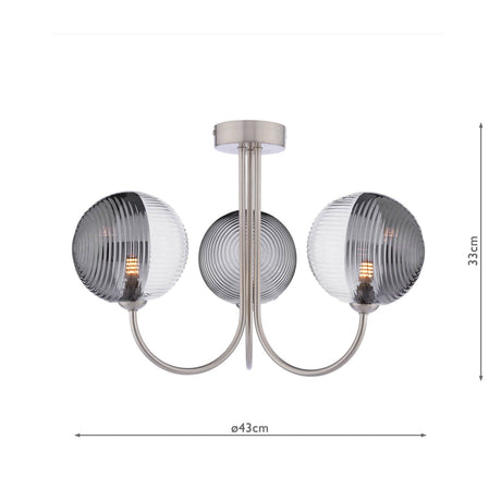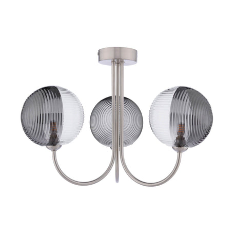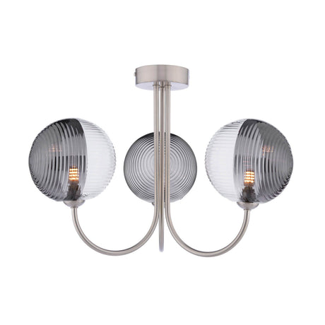 £15580 GBPUnit price /UnavailableIn stock (100 units)Jared 3 Light Semi-Flush Satin Nickel With Smoked/Clear Ribbed Glass