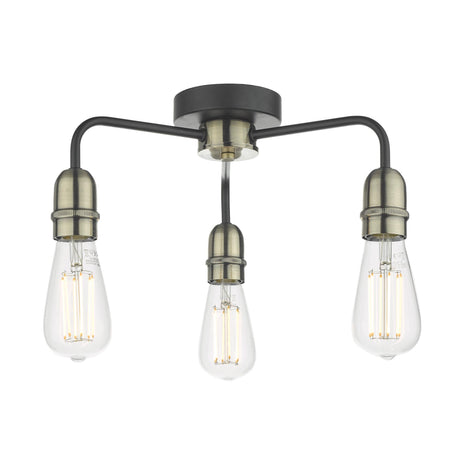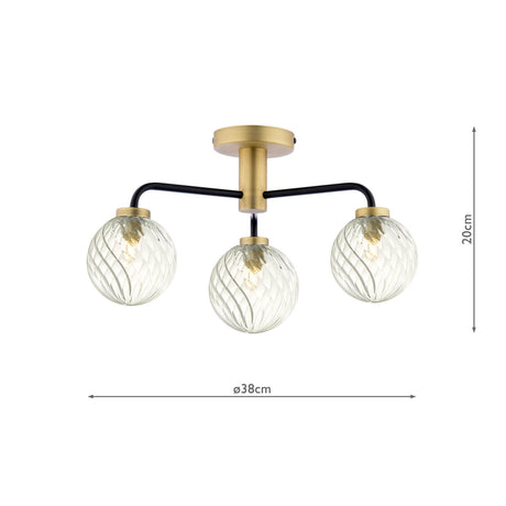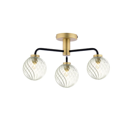£6800 GBPUnit price /UnavailableIn stock (100 units)Lainey 3 Light Semi-Flush Matt Black and Antique Brass With Twisted Glass