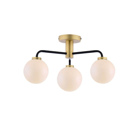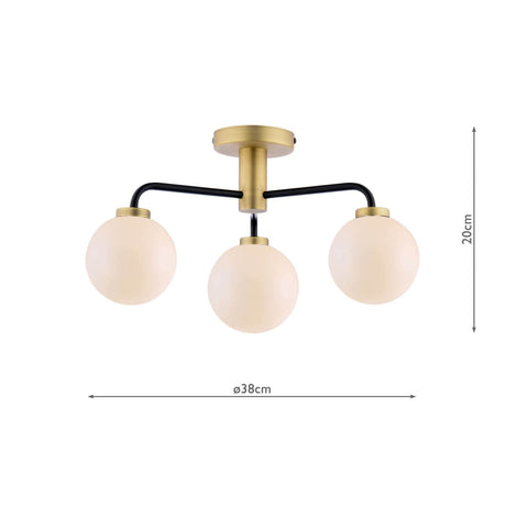 £9680 GBPUnit price /UnavailableIn stock (100 units)Lainey 3 Light Semi-Flush Matt Black and Antique Brass With Opal Glass