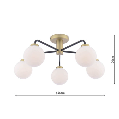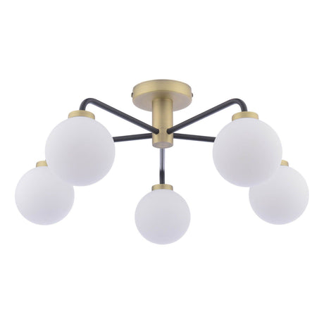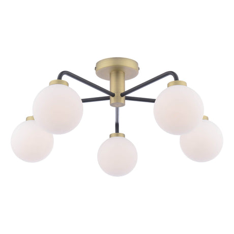 £14800 GBPUnit price /UnavailableIn stock (100 units)Lainey 5 Light Semi-Flush Matt Black and Antique Brass With Opal Glass