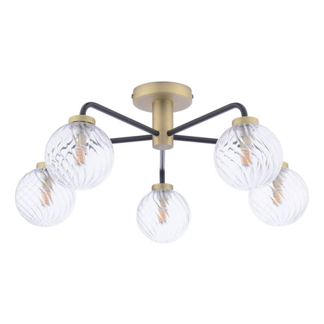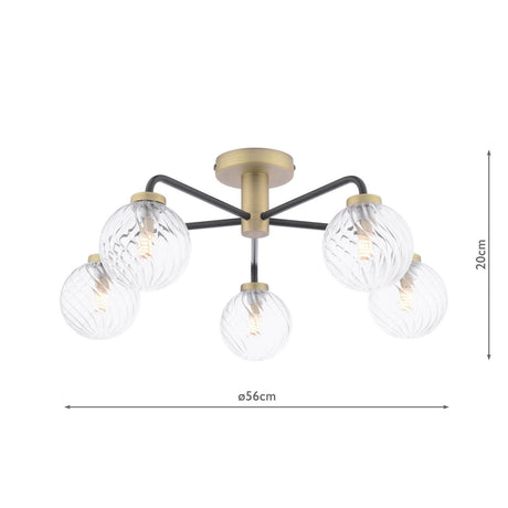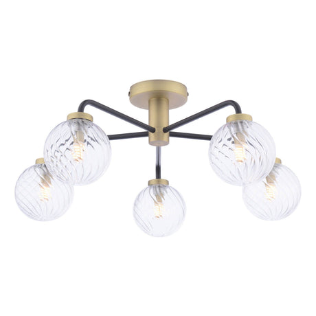 £10000 GBPUnit price /UnavailableIn stock (100 units)Lainey 5 Light Semi-Flush Matt Black and Antique Brass With Twisted Glass