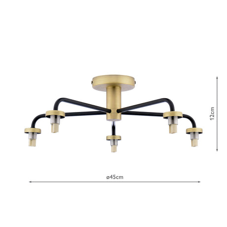 £7200 GBPUnit price /UnavailableIn stock (100 units)Lainey 5 Light Semi-Flush Matt Black and Antique Brass Frame Only