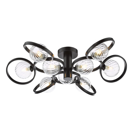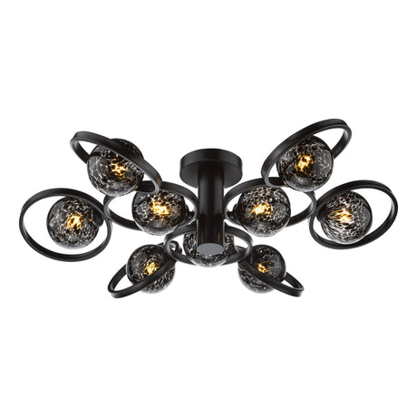 £21000 GBPUnit price /UnavailableIn stock (100 units)Lynette 9 Light Semi-Flush Satin Black With Twisted Glass