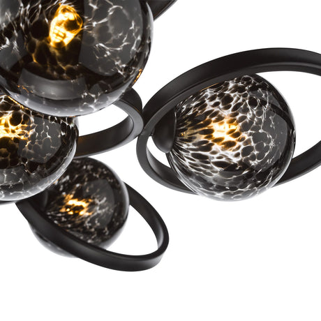 Lynette 9 Light Semi-Flush Satin Black With Black Confetti Glass