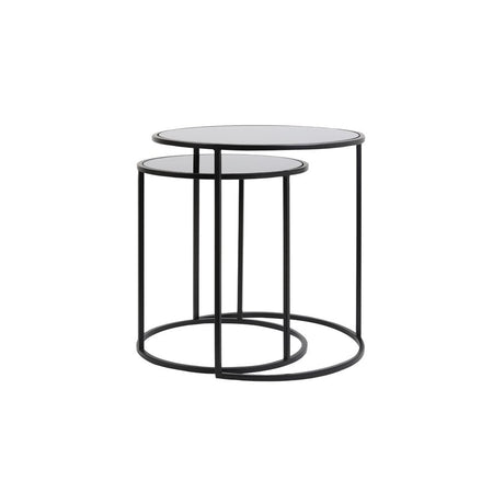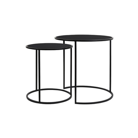 Black Round Glass & Metal Side Tables Set - Duarte Collection (40x45cm & 50x52cm)