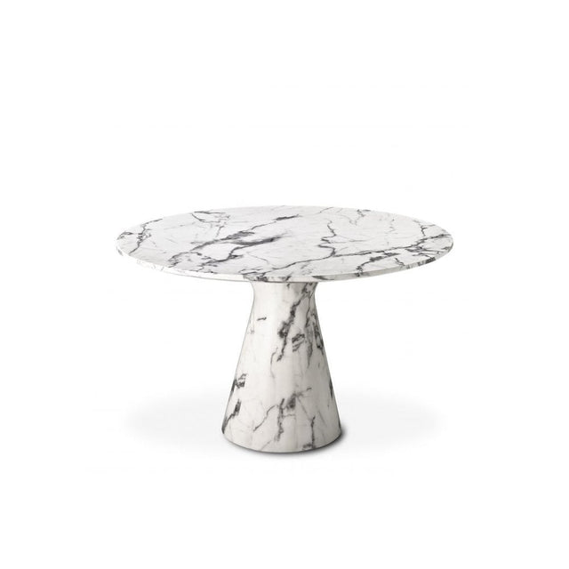 Turner Round Dining Table in White Faux Marble with Black Veining