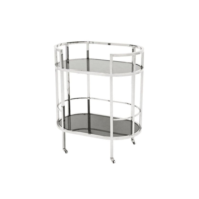 Elegant Townhouse Bar Cart, Stainless Steel & Smoked Glass