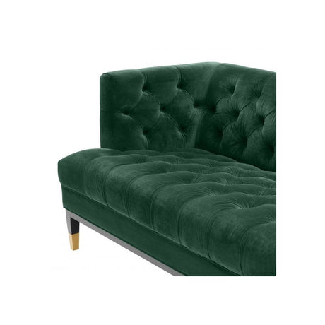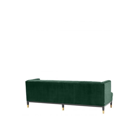 Castelle Sofa in Deep Green Velvet with Chic Brass and Black Accents