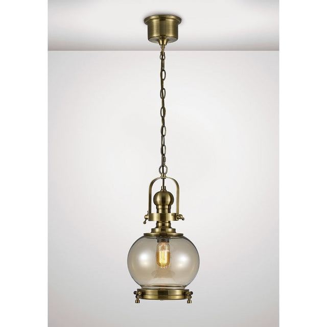 Riley Small Ball Pendant Light with Antique Brass and Cognac Glass Shade