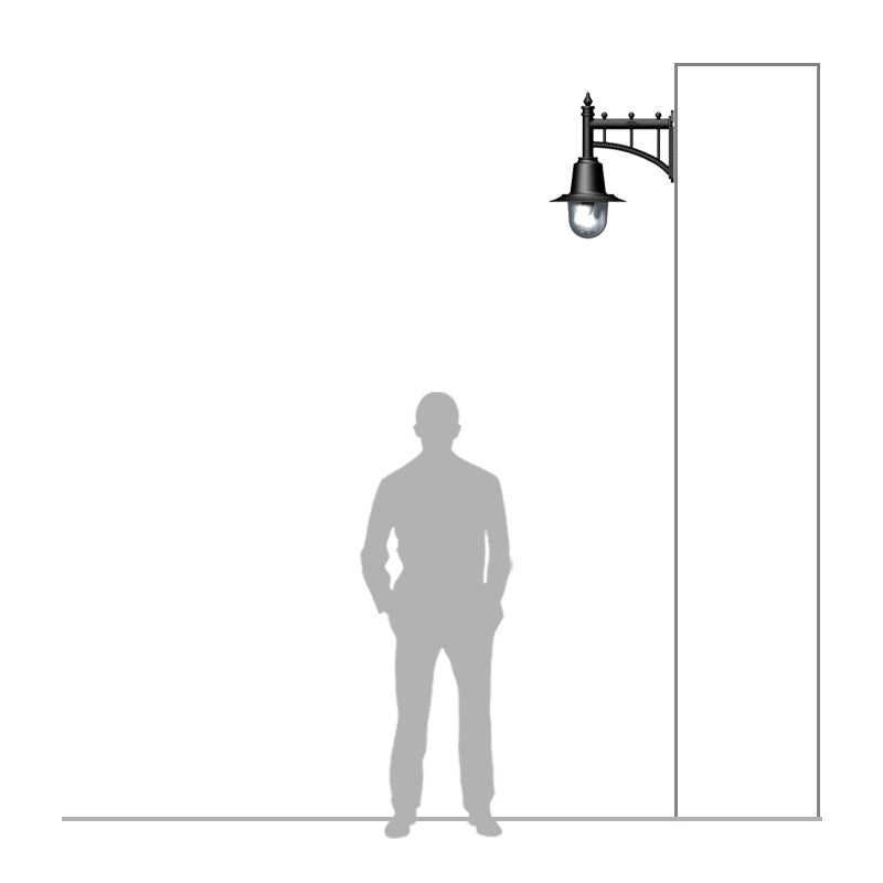Classic railway style wall light in cast iron and steel 0.62m in height Inspired by the classical and functional features originating from the Georgian era, the cylindrical design from the Station Master range allows for maximum lighting spread through the polycarbonate glazing while the ornate capping encloses the light source, reduces light pollution and reflects the light spread downwards.