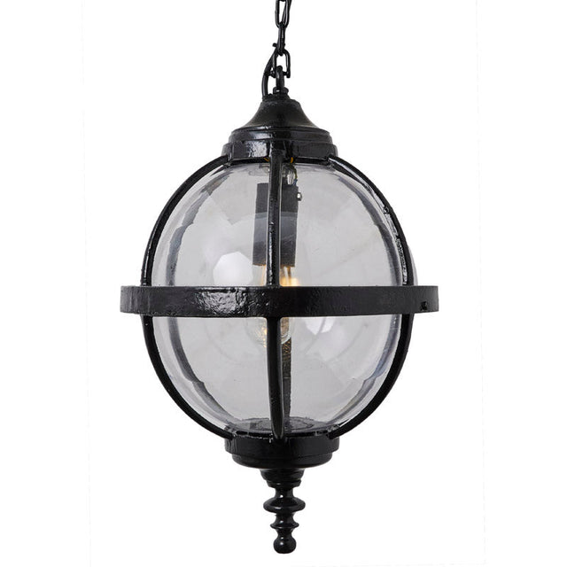Victorian globe galvanised steel hanging light 0.65m in height with chain The design for the Heritage range of lighting has been taken directly from a Victorian original lamp post with a cast iron globe. This classic and unique design will add instant style and vibrancy to any outdoor area, the vintage globe and cast iron embellishments are also very versatile with many classical style properties.