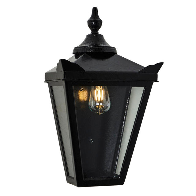 Victorian traditional cast iron wall light This large bulkhead is based off the classic lantern from our traditional range, the half lantern shape allows the wall light to fit neatly onto a wall and is very easy to install. The sleek shape allows for maximum lighting spread and is normally bought as a pair for an entrance doorway.