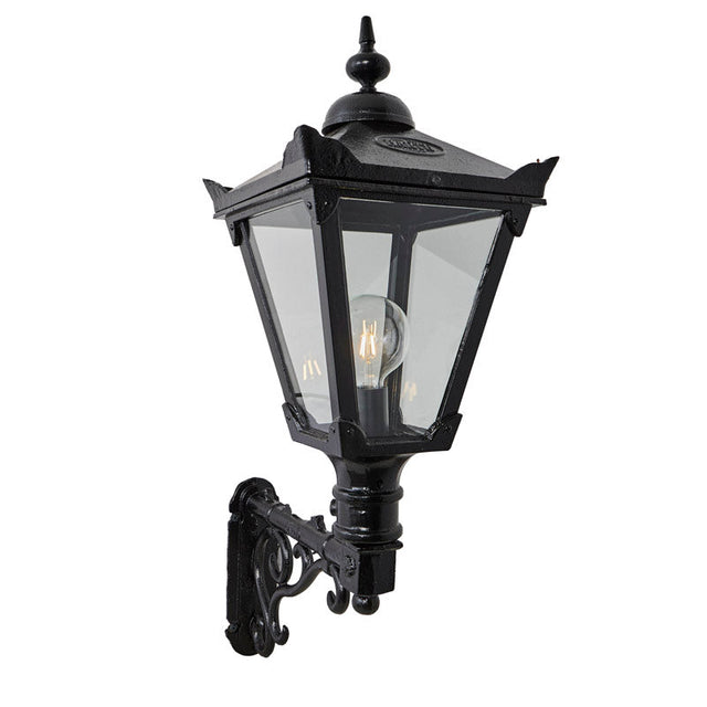 Victorian traditional cast iron wall light 1.1m in height with decorative arm The design for the Manor range is based on outdoor lighting from the Victorian era and is an extension of our own popular Traditional Park range. This classic design will enhance any outdoor space and is versatile to many different house styles.