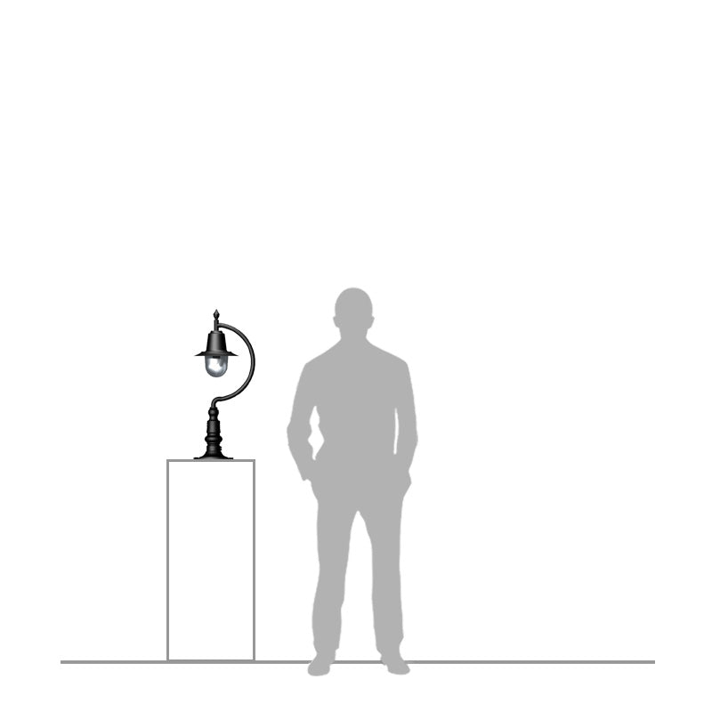 Vintage tear drop pier light in copper, cast iron and steel 0.64m in height for flat piers The Goose Neck range as the name suggests is based on the organic curve from the old farmyard Goose neck. The vintage design of the range is really flexible to a wide range of customer needs from placing along winding driveways to highlighting a corner of the garden.