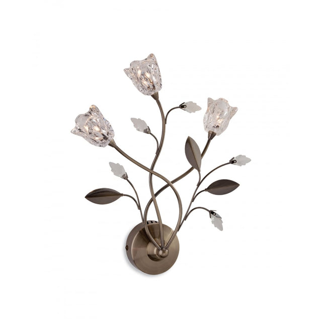 Vintage Floral Art Deco Wall Sconce with Clear Glass - Antique Brass Finish