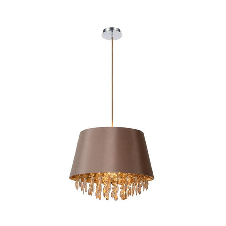 Modern Round Taupe Crystal Pendant Light - 45cm