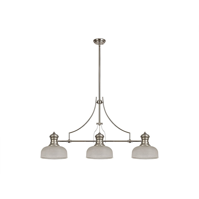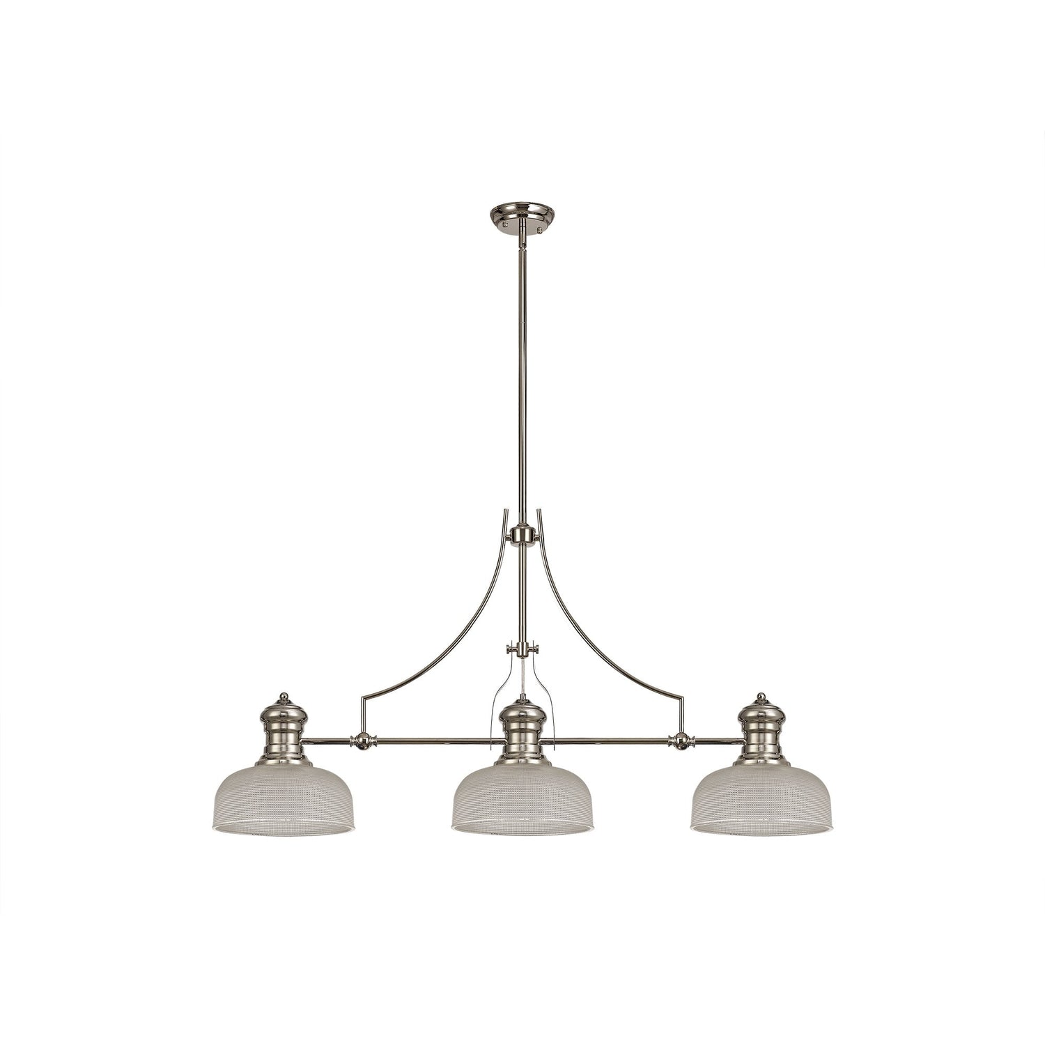 Triple Light Adjustable Pendant with Prismatic Glass Shades in Polished Nickel Finish