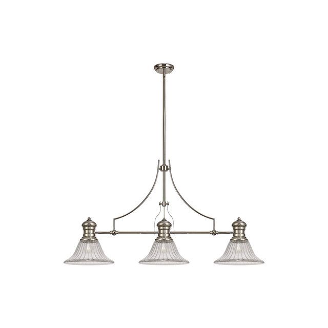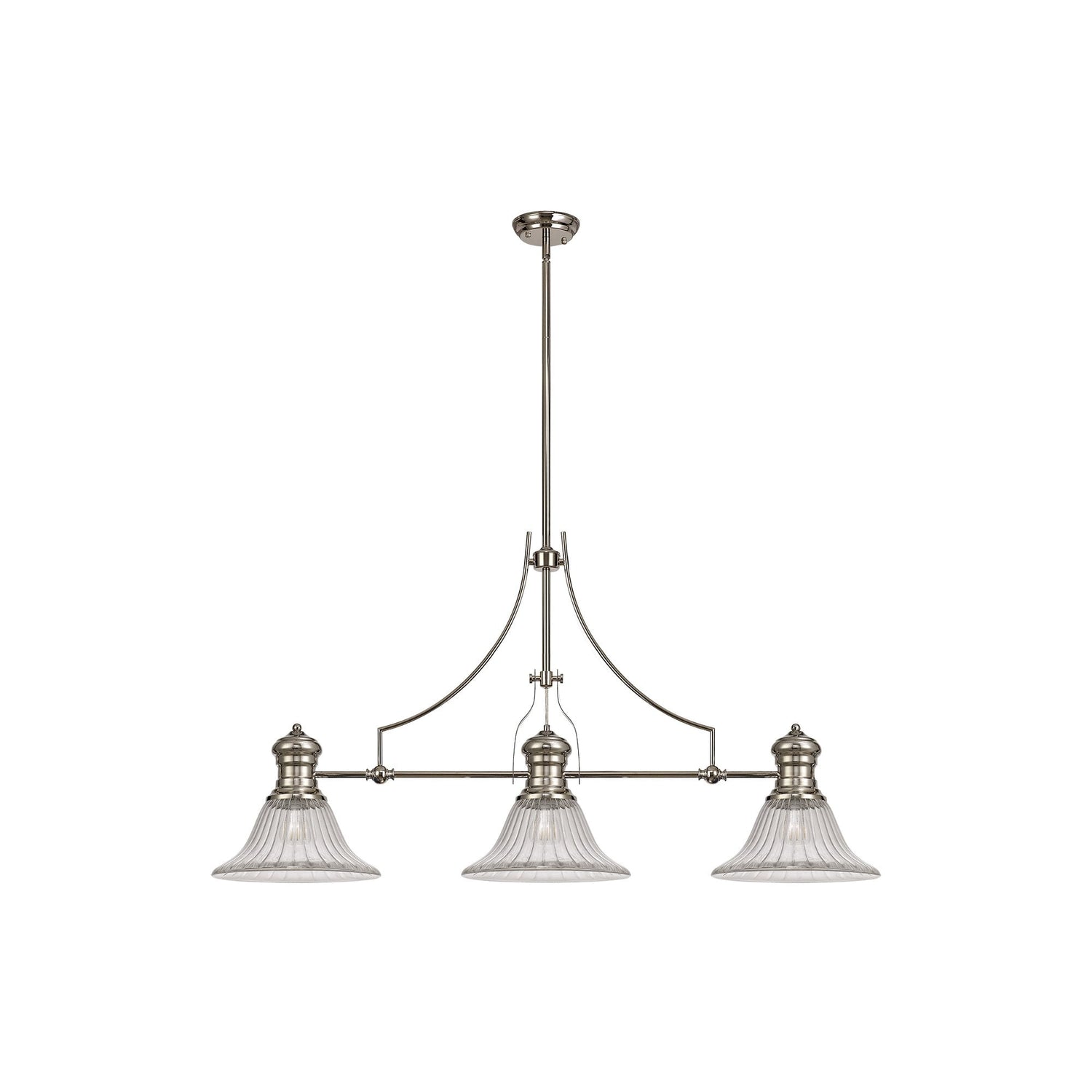 Triple Light Telescopic Pendant with 30cm Clear Glass Bell Shades, Polished Nickel Finish