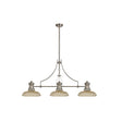 Modern Amber Glass Triple Pendant Light with Polished Nickel Finish
