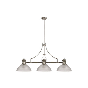 Polished Nickel & Clear Glass Pendant with Prismatic Shade Trio