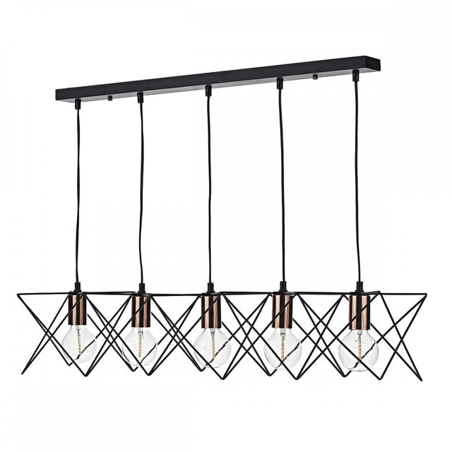 Midi Cage 5 Light Bar Pendant Matt Black Bright & Copper