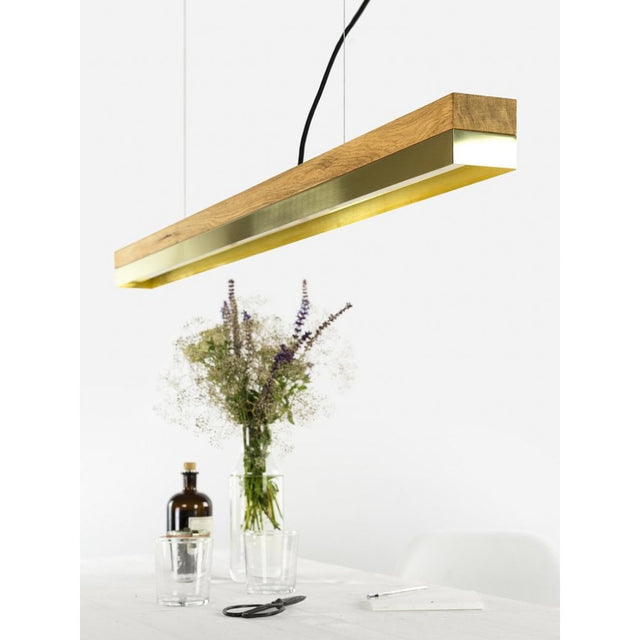 Elegant Oak and Brass LED Pendant Light, 122cm, Warm White (2700K)