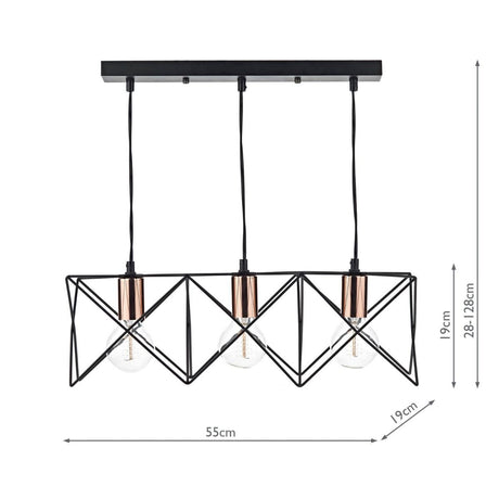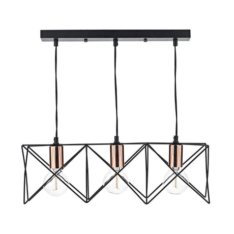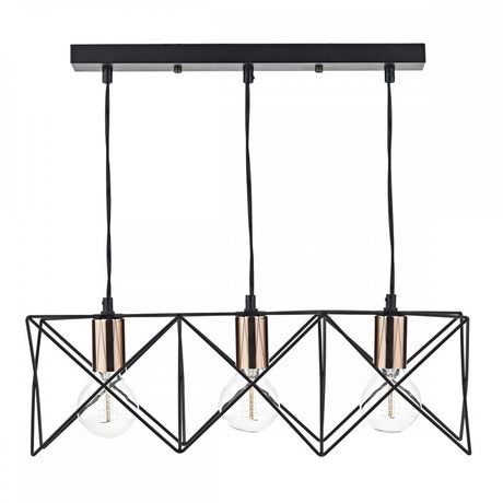 Tri-Light Matte Black and Copper Pendant Bar Lamp