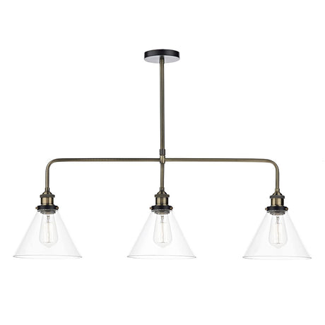 £13235 GBP£14706Unit price /UnavailableIn stock (89 units) Dara 3 Light Bar Pendant Antique Brass & Glass