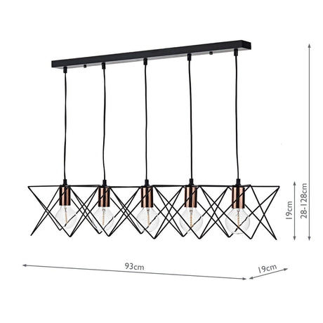 £19266 GBPUnit price /UnavailableIn stock (108 units)Midi Cage 5 Light Bar Pendant Matt Black Bright & Copper
