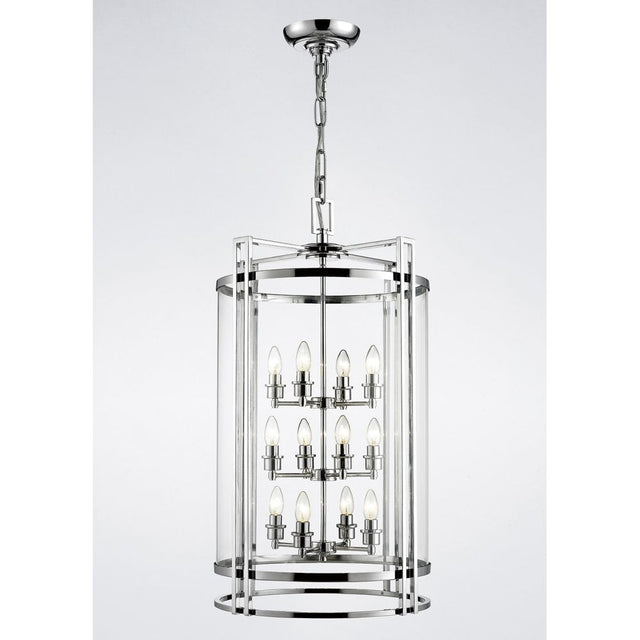 Eaton 12-Light Polished Chrome Glass Pendant Chandelier