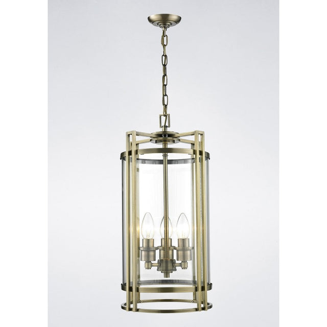 Eaton Antique Brass & Glass Triple-Pendant Light Fixture