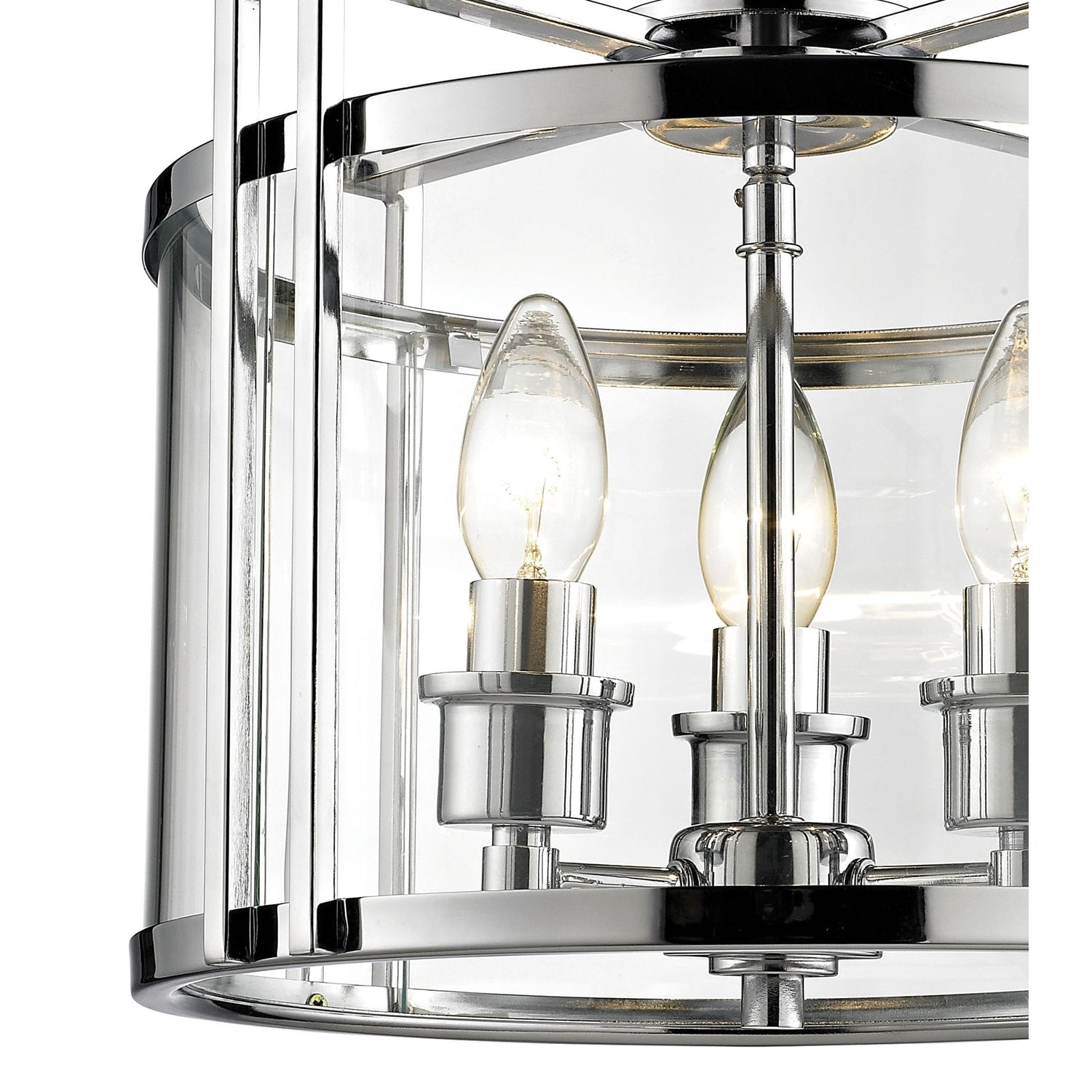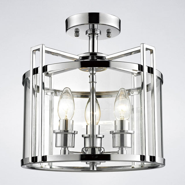 Eaton Polished Chrome 3-Light Semi Ceiling Lantern with Glass Panels