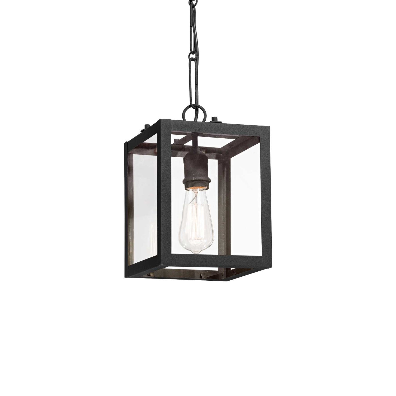 Metal body with matt black enamel finish. Shade made of clear glass slabs.