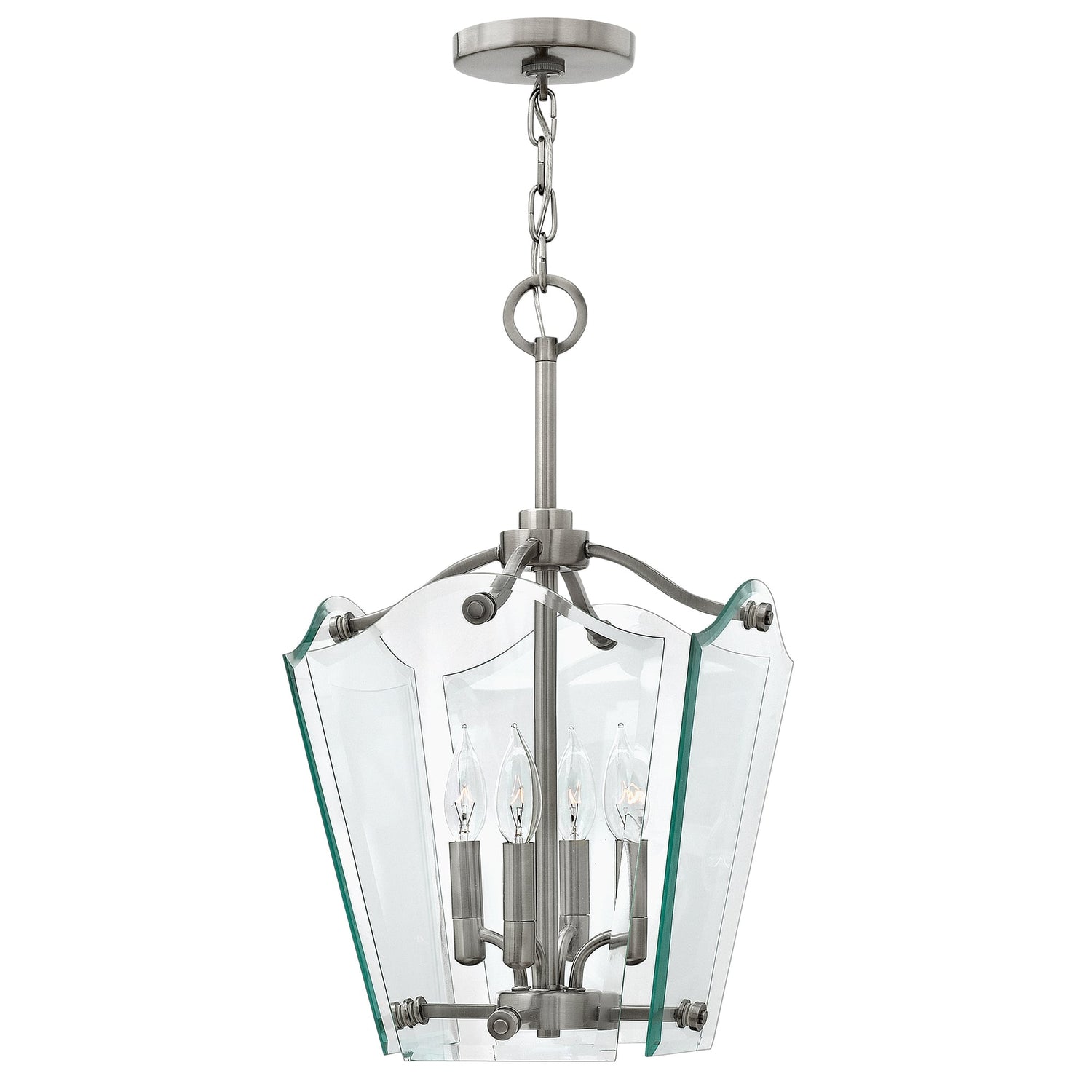 Wingate offers tradition with a twist: clear floating bevelled glass panels surround understated cast round candle cups and candle sleeves. This range has a Polished Antique Nickel finish for a modern yet classic style.