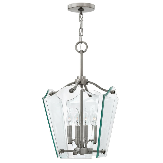Vintage Bevelled Glass Pendant Light in Polished Antique Nickel