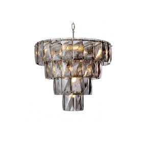 Amazone S Chandelier in Nickel Finish with Smoky Glass Elegance
