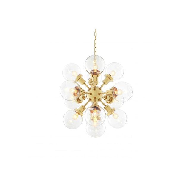 Gold Starburst Chandelier with Clear Glass Globes is backordered and will ship as soon as it is back in stock.