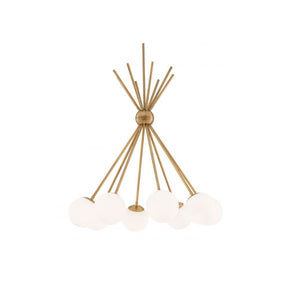 Mid-Century Modern Luxor Chandelier in Antique Brass with White Globe Shades