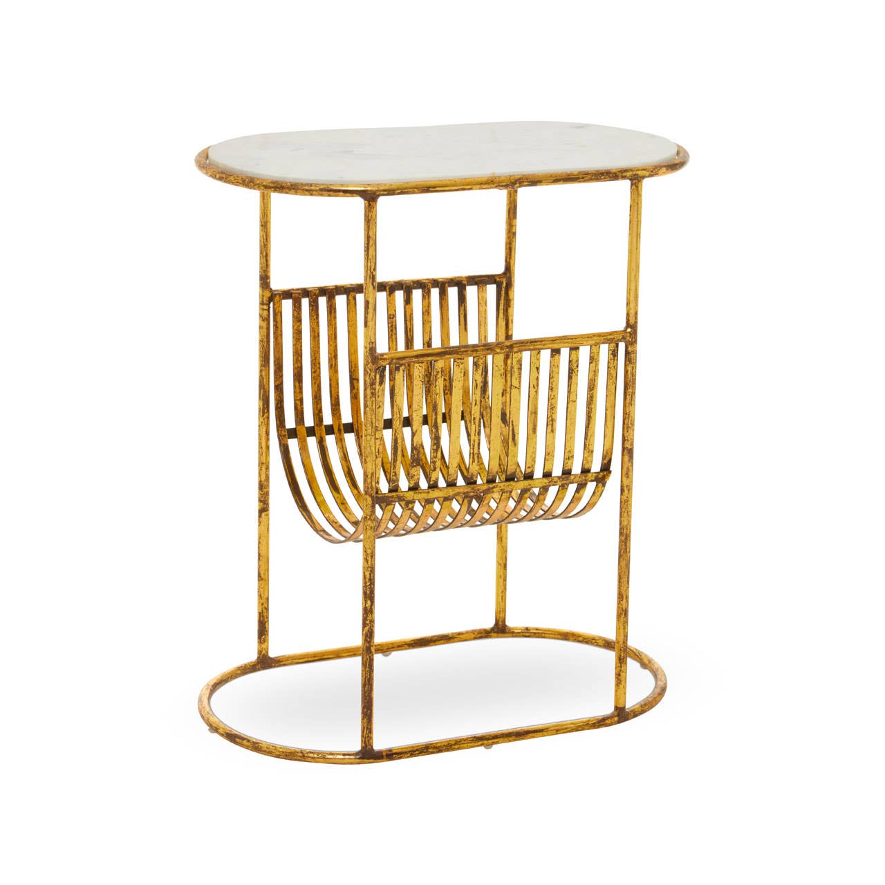 Contemporary Gold Rabia Side Table with Curved Magazine Rack