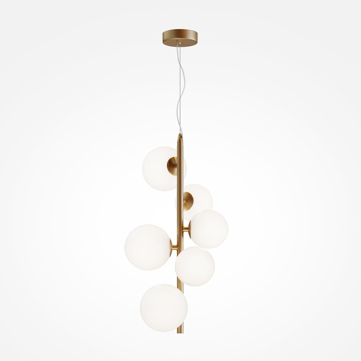• Metal fittings in five colors: matte black, black, chrome, gold, matte gold, brass. Dome lamps — blown glass. Colors — smoky, amber, cognac,matte white and black. Design with molecular structure simulation. Height of pendant lamps is adjustable using cable. Lamp with G9 base.