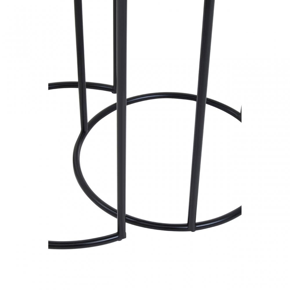 - These nesting tables are crafted with a sense of grace and restraint that elevates any space. The metal base forms their thin yet supportive bases while the glamorous abstract top display is what keeps it outstanding.