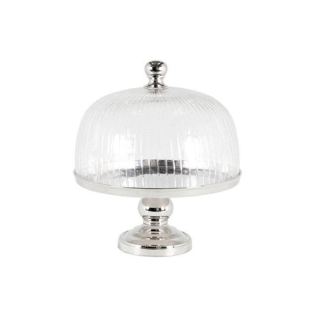 Glamorous Giorgio Cake Stand with Nickel Base and Ribbed Glass Dome