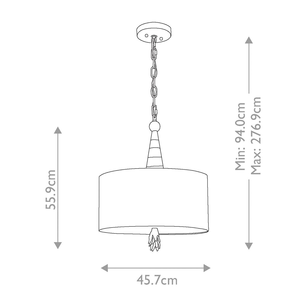 - Size: H: 559mm D: 457mm Min/Max Drop: 940mm - 2769mm