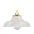 Antique Brass Aquarius Pendant Light with Clear Holophane Glass - 30cm